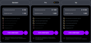 Все три счёта имеют кнопку «СТАТЬ ИНВЕСТОРОМ» — после выбора счёта система переводит на регистрацию.