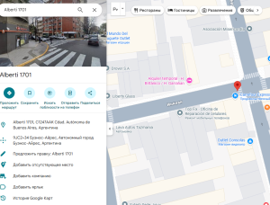 SnowEdin указывает адрес в Аргентине — якобы там находится офис компании. Проверка по Google Maps, справочникам и картам показывает: по этому адресу нет офиса, нет следов финансовой компании, нет таблички, нет упоминания в местных реестрах бизнеса или аренды. Это случайный адрес, взятый из открытых источников (Google Maps, справочники).