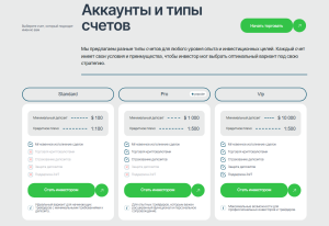 Брокер предлагает три типа счетов: