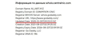 Allart утверждает, что работает на рынке с 2017 года. Однако проверка веб-архива показала, что домен allart.xyz был зарегистрирован только в 2021 году, а активная деятельность началась в декабре 2025 года.
