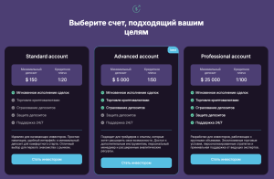 Минимальный депозит для обычной торговли — 150 долларов. При этом доступно только базовое плечо 1:20.