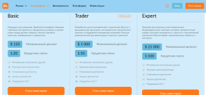 - Basic — депозит от 150$, плечо до 1:20.