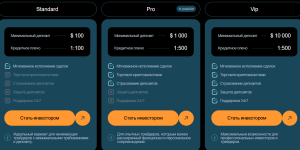 - VIP — от 10 000 долларов, плечо 1:500.