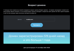 Возраст домена — всего 519 дней