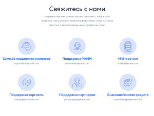- Указаны 6–7 разных e-mail (support@, pamm@, vps@, trading@, partners@, backoffice@ и т.п.).