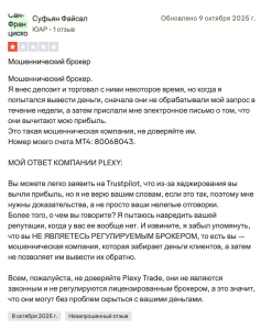 В открытых источниках (Trustpilot, Forex Peace Army, профильные форумы, Telegram-чаты трейдеров, Reddit) PlexyTrade практически не существует. Реальных, подробных отзывов от живых людей почти нет — ни скринов терминала, ни историй вывода, ни длительных обзоров.