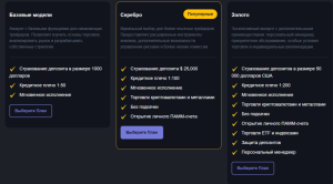 - минимальный депозит по каждому тарифу — не написан